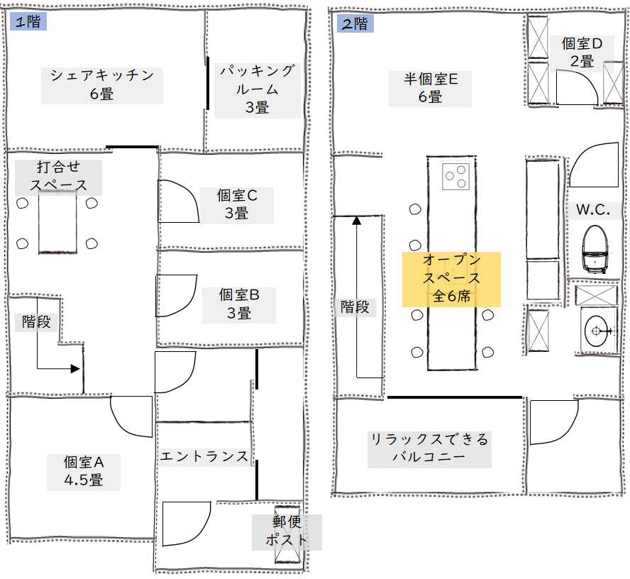- オープンスペースは全部で6席